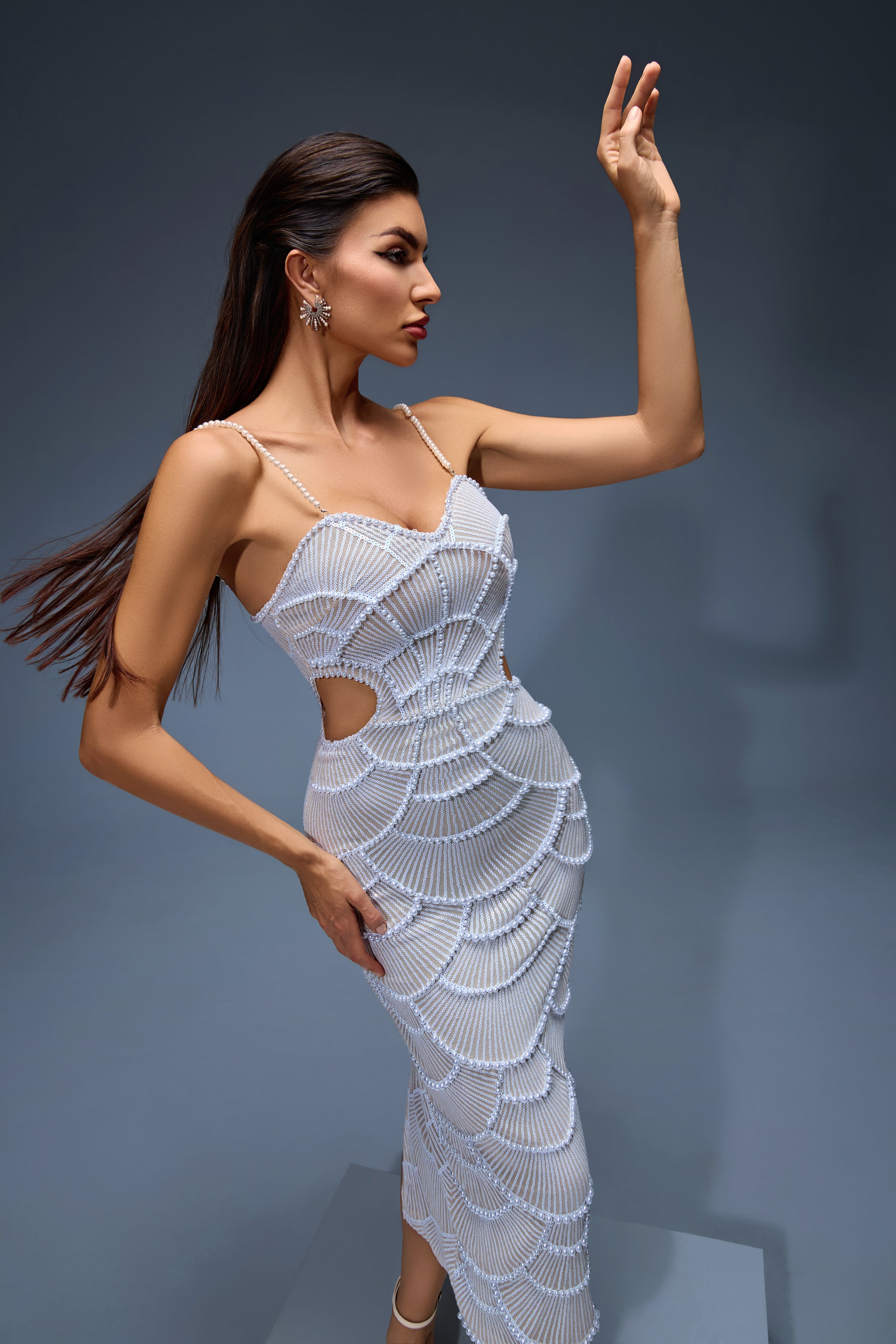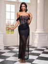 Corset style lace and tulle dress with a side slit. Crafted with premium materials, this piece is designed to make you stand out at any event. Perfect for parties, weddings, and evening galas, it combines sophistication with modern elegance. Pair it with delicate accessories and heels for a polished, head-turning look.