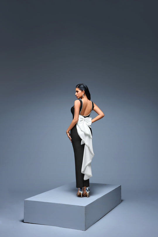 An iconic silhouette reimagined in crisp black and white, this piece is versatile enough for both daytime and evening wear. The charming bow detail adds a feminine touch, making it perfect for romantic dinners or formal...Regular price Rs. 7,500.00 -