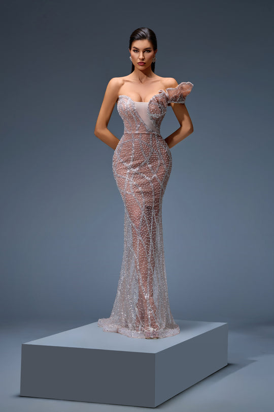 This beige gown, adorned with silver embellishments, radiates pure sophistication. A flawless pick for weddings or gala nights.Regular price Rs. 14,000.00 -