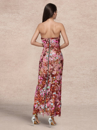 Embrace whimsical charm with this fully embroidered multicolored dress adorned with intricate 3D flowers. The playful yet sophisticated design makes it an ideal choice for garden parties, spring weddings, or destination celebrations. Light and airy, it moves beautifully with every step, while the vivid hues bring freshness to your wardrobe. Style with nude heels and dainty accessories for a romantic finish.