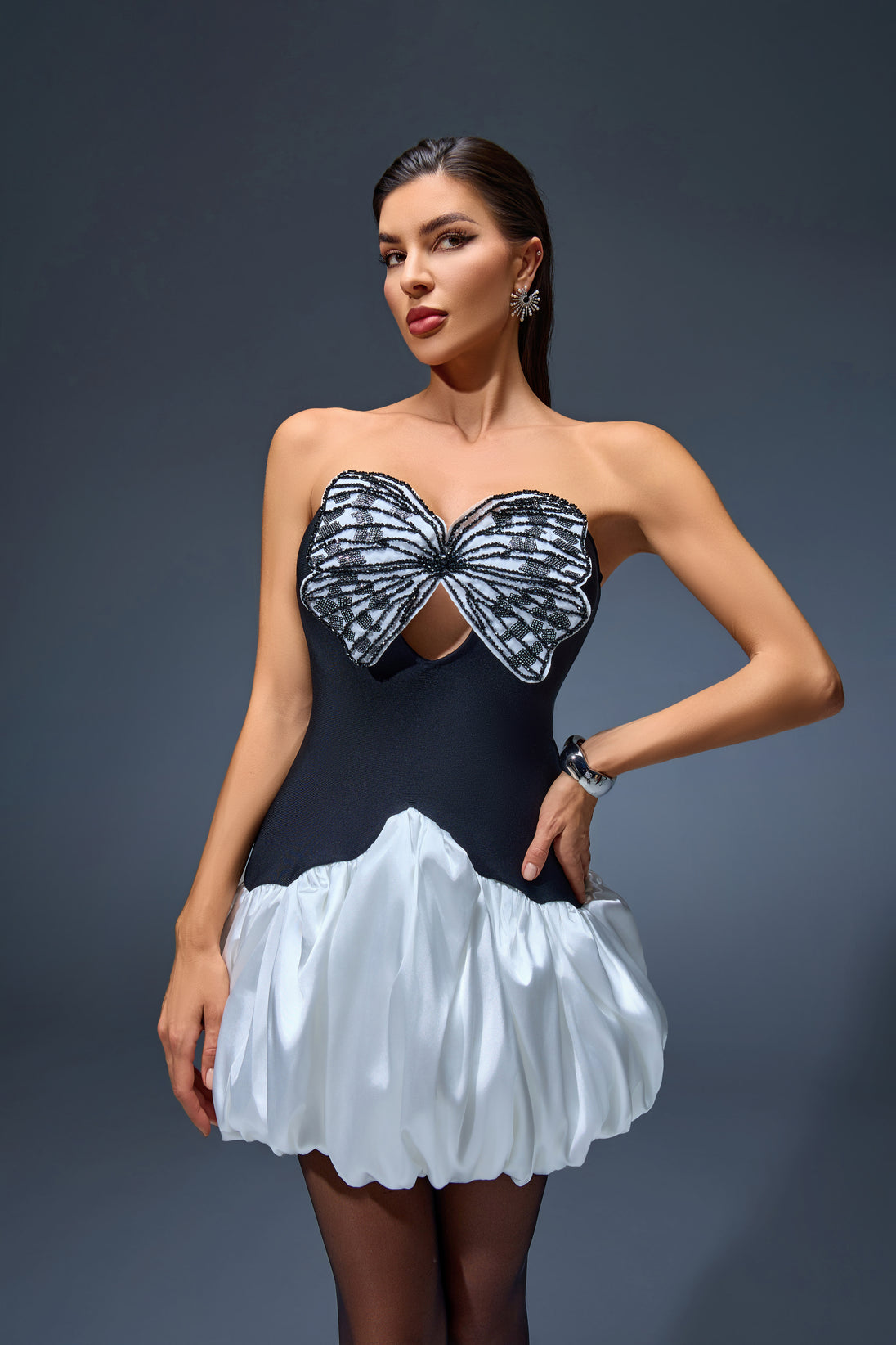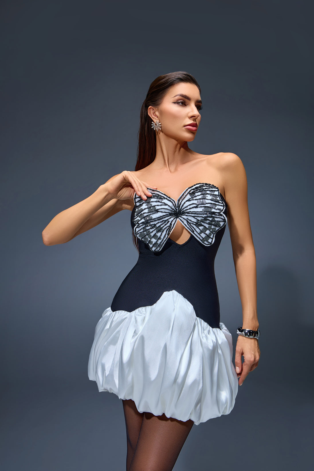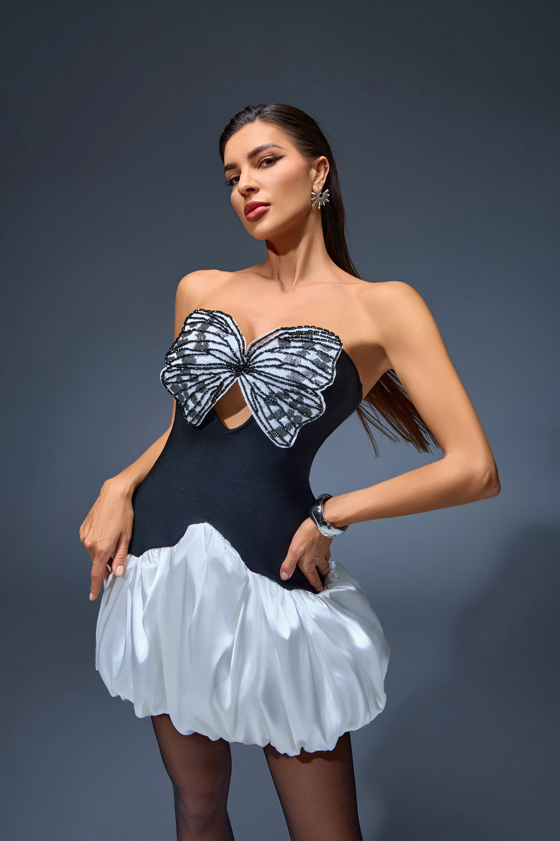 Whimsical and fun, this dress features a balloon silhouette and butterfly details, ideal for playful daytime looks.