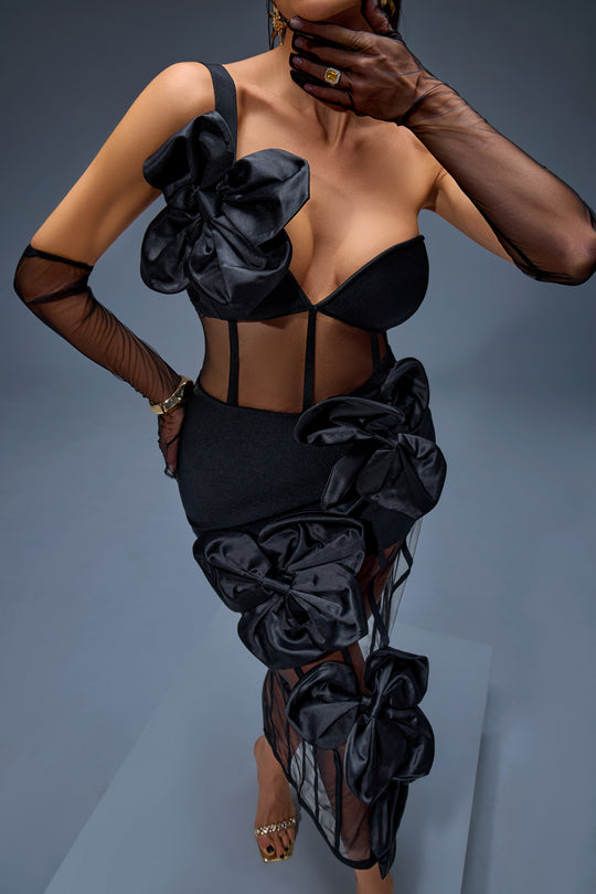 Sculpted to perfection, this corset dress is enhanced with artistic 3D flower detailing, offering a sophisticated yet modern aesthetic.Regular price Rs. 9,500.00