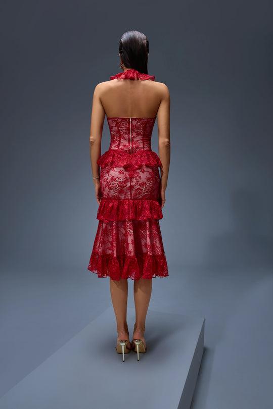 Romantic and timeless, this red lace dress is enhanced with soft ruffles for a dreamy look perfect for date nights or special occasions.Regular price Rs. 7,500.00 -