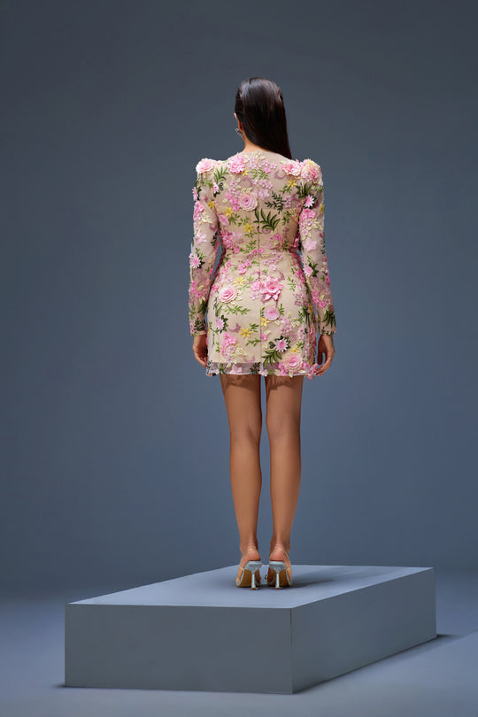 A delicate short dress adorned with intricate floral embroidery. Perfect for garden parties or brunches, this dress combines elegance and charm for a fresh, feminine vibe.Regular price Rs. 8,000.00