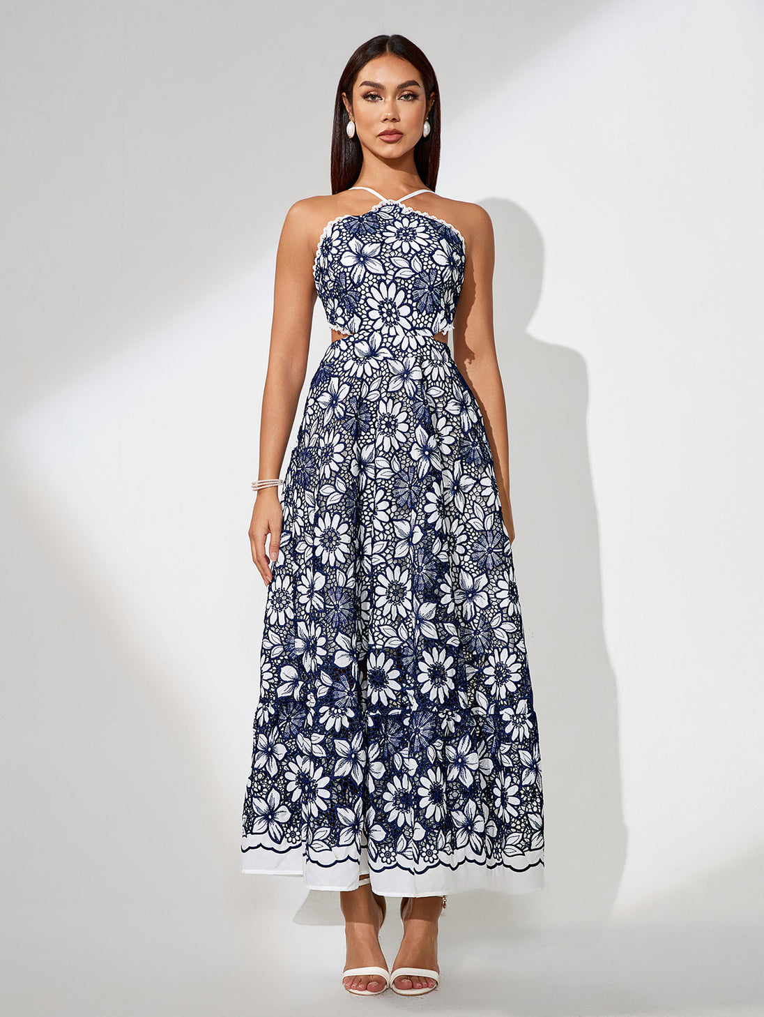 A sophisticated floral lace dress with lining till the knees and a romantic tie-up detail at the back. Designed for timeless appeal, it’s perfect for evening galas or cocktail parties. Accessorize with diamond studs and an elegant clutch.