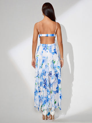 This enchanting floral printed dress is crafted in lightweight chiffon for a breezy, vacation-ready look. Featuring a graceful low back and padded bodice for comfort and support, it flows effortlessly with every step. Ideal for sunny getaways or brunches, it flatters all body types with its free-flowing silhouette. Pair it with strappy sandals and a floppy hat for the ultimate resort vibe.